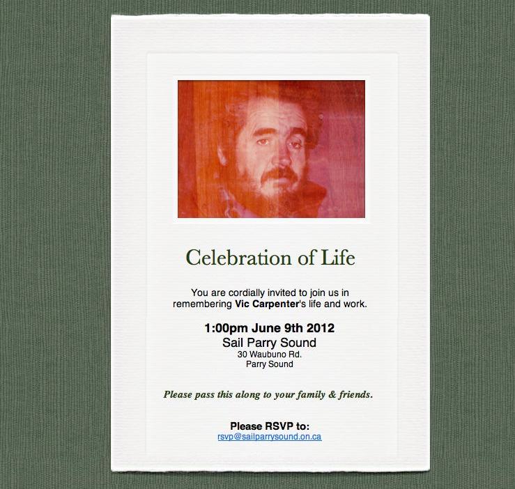 Celebration of Life, June 9th, 1:00 at Sail Parry Sound. RSVP to rsvp@sailparrysound.on.ca