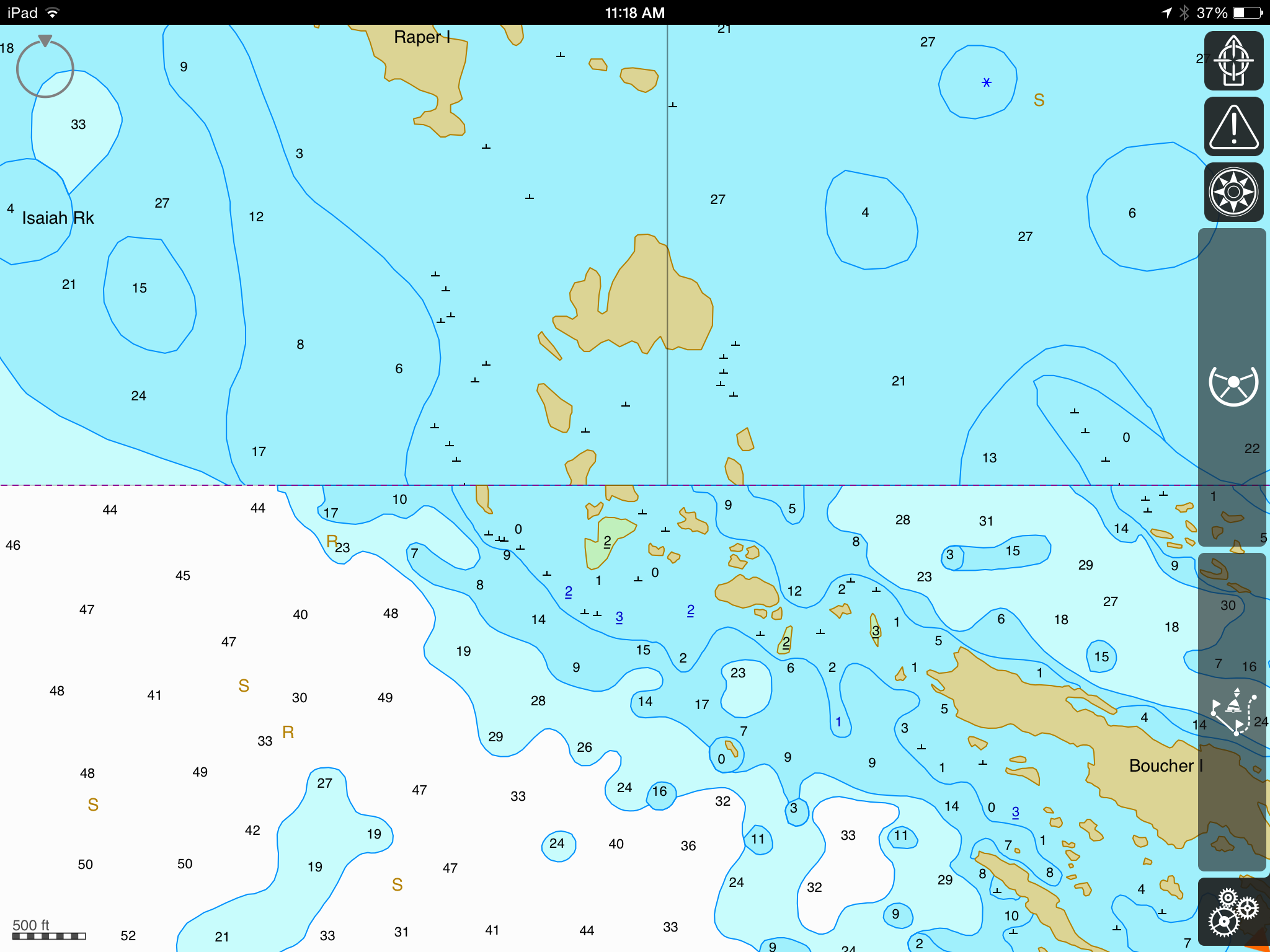 Last fall I provided a series of informal reviews on navigation apps that could be used with a GPS equipped Apple iPad. That would be the Wi-Fi/Cellular version, which is priced at a $130 premium to the WiFi only model in Canada. In theory these apps should also work with the the WiFi/Cellular version of the iPad Mini and the iPhone. After using these apps last summer I suspect the screen size of the iPhone and possibly the Mini  is a little too small to be practical if you are traveling more than 20 kph, at least in our waters where there seems to be a rock every few hundred meters. In theory, if not in practice, these apps are also available for Android tablets and phones. The basic Nexus 7″ tablet, available for about $250, has the advantage that it has GPS built-in, and represents a significant savings over an iPad with GPS functionality. The “in practice” comment earlier relates to the fact that not all of these apps are yet available in an Android version.
