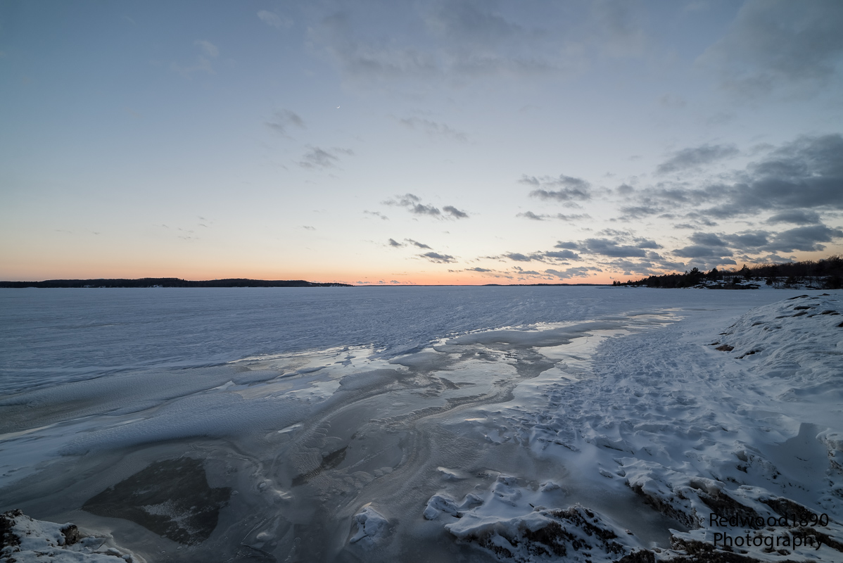 Not fit for skiing, ice fishing or boating, the Big Sound is a mess. We’ve had about three days of above freezing daytime temperatures and it has basically turned the snow on top of the ice into slush with a crust. It’s pretty much impossible to walk, ski or snowshoe on the Big Sound and snow machines send up a spray as they shuttle around trying to get the ice shacks off the ice. The ice is still nice and thick so it will still be too many weeks before the Big Sound is fit for boating. This the time of the season where you wished you had a hovercraft or one of those air boats used in the swamps of Louisiana.
