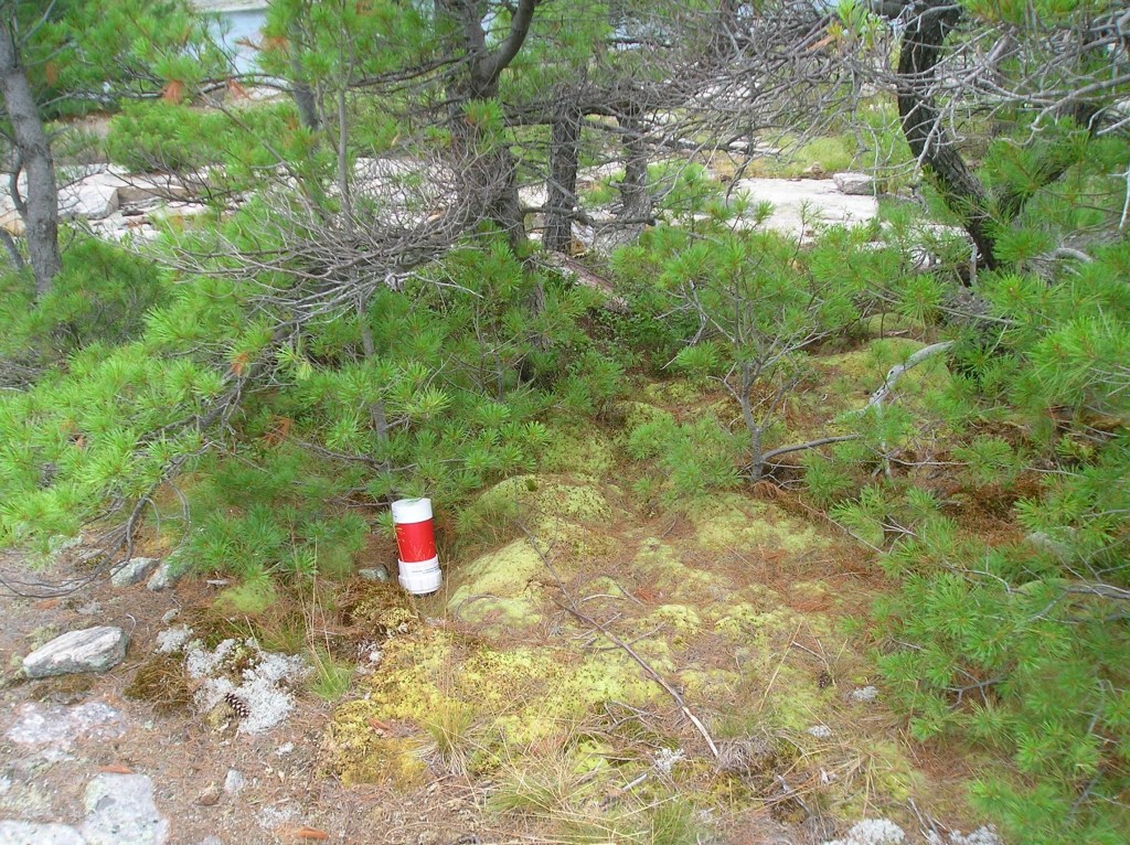 The cache is perched on a group of small trees. It should be easy to find once you’re close.
